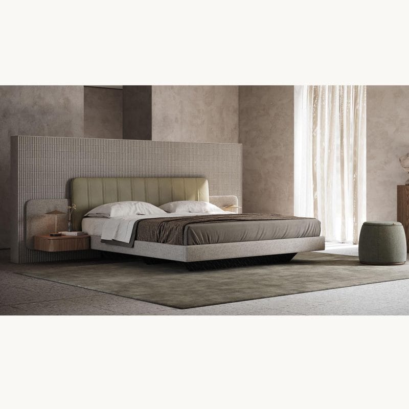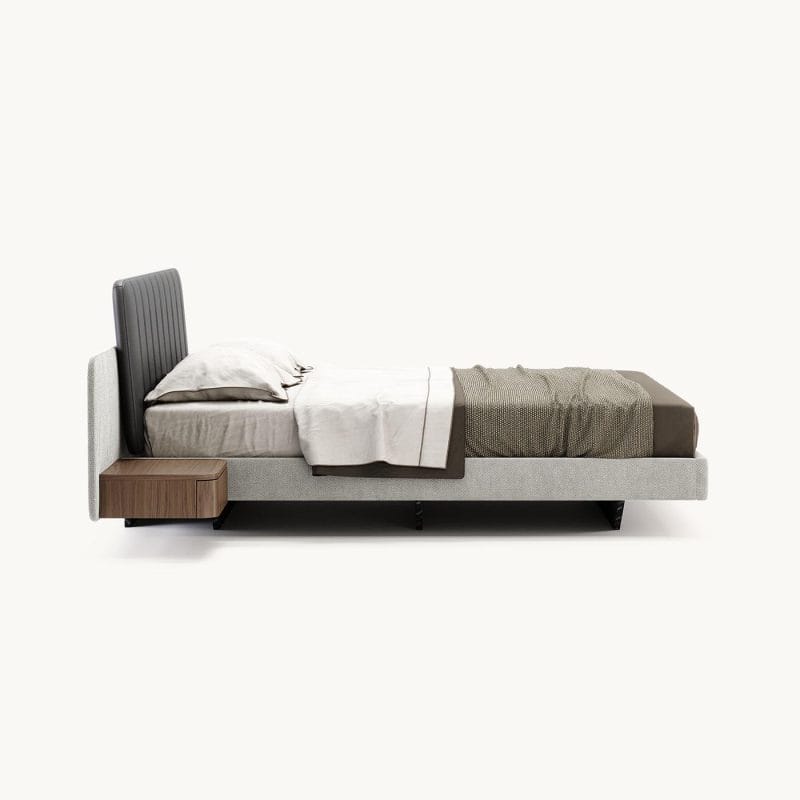 The Amanda Bed brings contemporary sophistication to bedroom design with its elevated structure and striking wide headboard. Distinguished by vertical double-top stitching, the upholstered headboard also features integrated wooden bedside tables on each side for a seamless, cohesive look.
