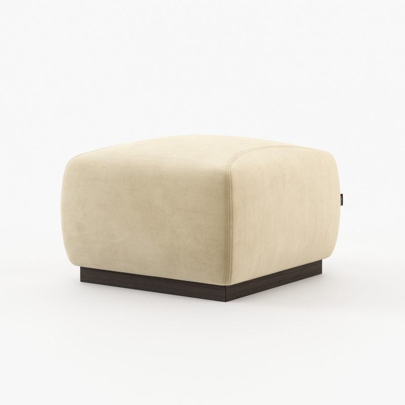 Mike pouf is a low stool with a base in stainless steel. This shimmering detail boosts the beauty of the fabric carefully crafted by our artisans. A small yet stylish accessory perfect for any home decor.
