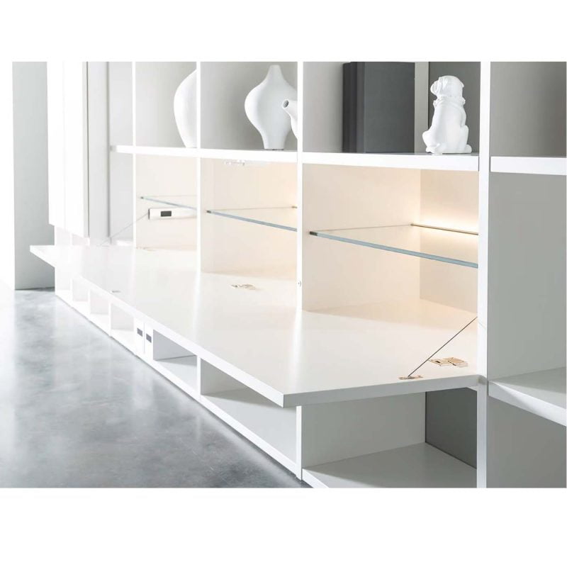 Η Atena είναι μια πολυλειτουργική βιβλιοθήκη. Το βασικό στοιχείο των ραφιών και των panels μπορεί να συνδυαστεί με πόρτες και συρτάρια. Η δυνατότητα εναλλαγής κλειστών και ανοιχτών χώρων δίνει διαφορετική μορφή στην επιλογή του κάθε πελάτη.