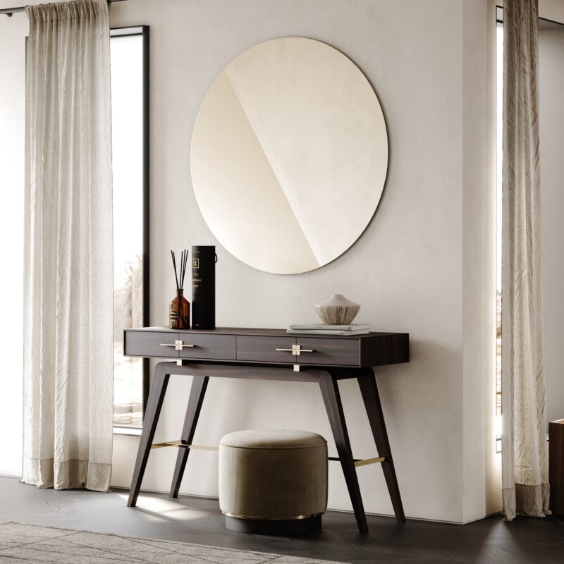 Το ταμπουρέ Eddy είναι ένα πολυλειτουργικό αξεσουάρ εσωτερικών χώρων γεμάτων λεπτομέρειες. Στρογγυλό ταμπουρέ με ξύλινη βάση και μεταλλικό περίγραμα.Αυτός ο συνδυασμός υλικών αναδεικνύει περισσότερο την υφή και το χρώμα του υφάσματος.