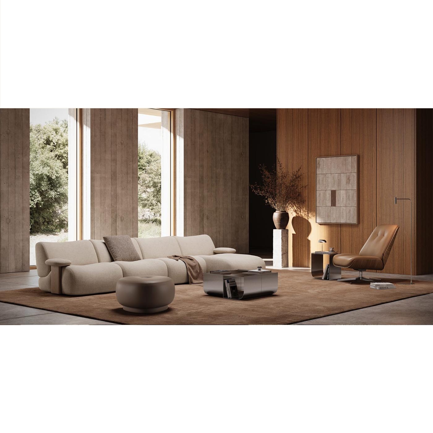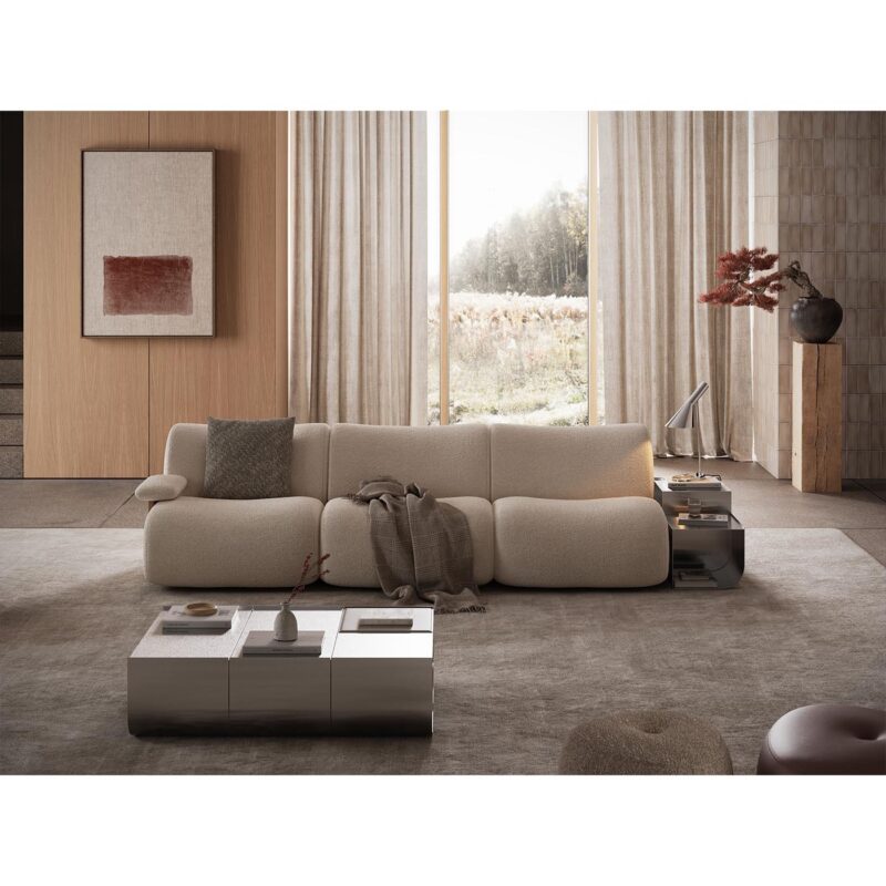 Ο Giorgio είναι ένας σύγχρονος γωνιακός καναπές, εμπνευσμένος από τις απαλές, στρογγυλεμένες φόρμες των επίπλων της δεκαετίας του 1970. Η ογκώδης σιλουέτα του χαρακτηρίζεται από την αρμονική και ενιαία σύνδεση ανάμεσα στο κάθισμα και την πλάτη, δημιουργώντας μια κομψή και ισορροπημένη μορφή.