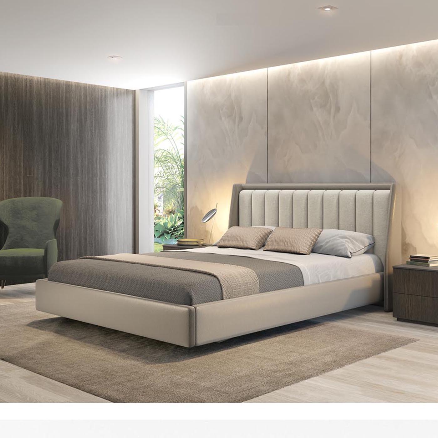 Με αρχιτεκτονική εμφάνιση το κρεβάτι Guiller με αιωρούμενη βάση σχεδιάστηκε για να μεταμορφώσει την κρεβατοκάμαρα σε έναν χώρο περισυλλογής. Ο επιβλητικός σχεδιασμός του, που χαρακτηρίζεται από στιβαρές γραμμές και μια οπτική ισορροπία ανάμεσα στη δύναμη και την ελαφρότητα, δημιουργεί μια αίσθηση αιώρησης που αψηφά τη βαρύτητα, ανεβάζοντας το περιβάλλον σε ένα νέο επίπεδο κομψότητας.