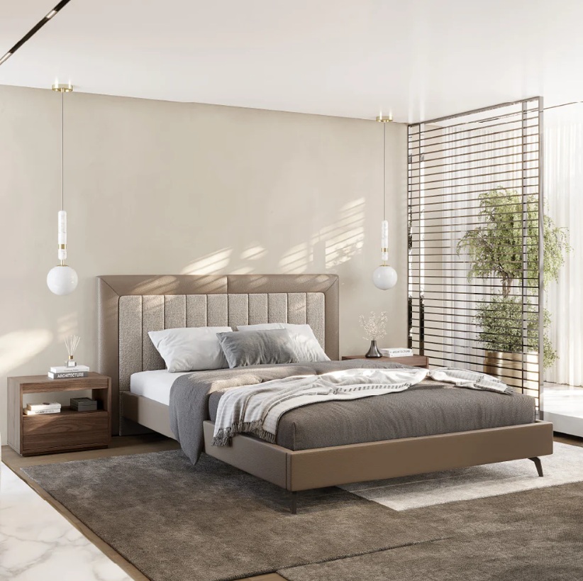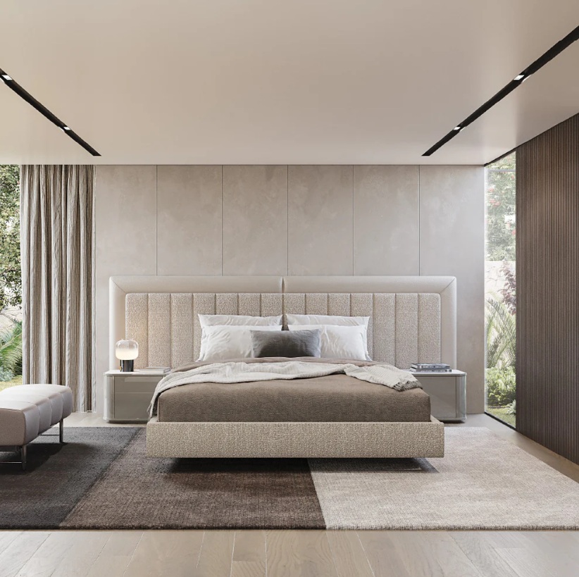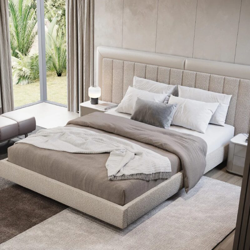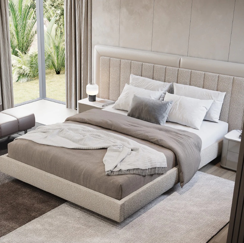 Το κρεβάτι Hilay με κλειστή ή ‘αιωρούμενη’ βάση, προσφέρει μια ανάλαφρη και εκλεπτυσμένη προσέγγιση στη σύγχρονη ξεκούραση. Το προσκέφαλο με τις έντονες κάθετες γραμμές προσθέτει οπτικό ρυθμό στο σύνολο, ενώ η υπερυψωμένη βάση δημιουργεί την αίσθηση ότι το κρεβάτι αιωρείται και απελευθερώνει τον χώρο από κάτω, ενισχύοντας την αίσθηση ευρυχωρίας στο δωμάτιο.