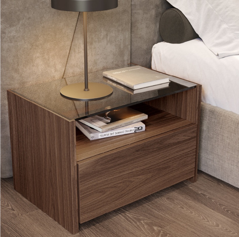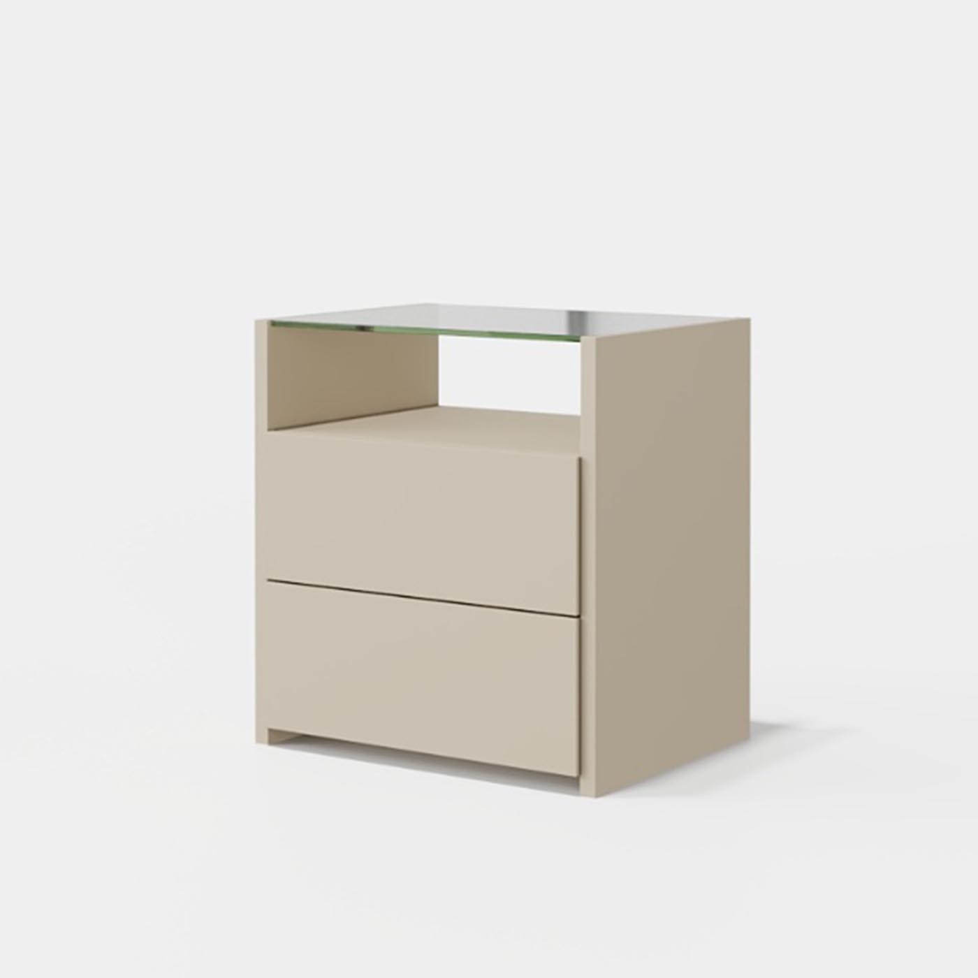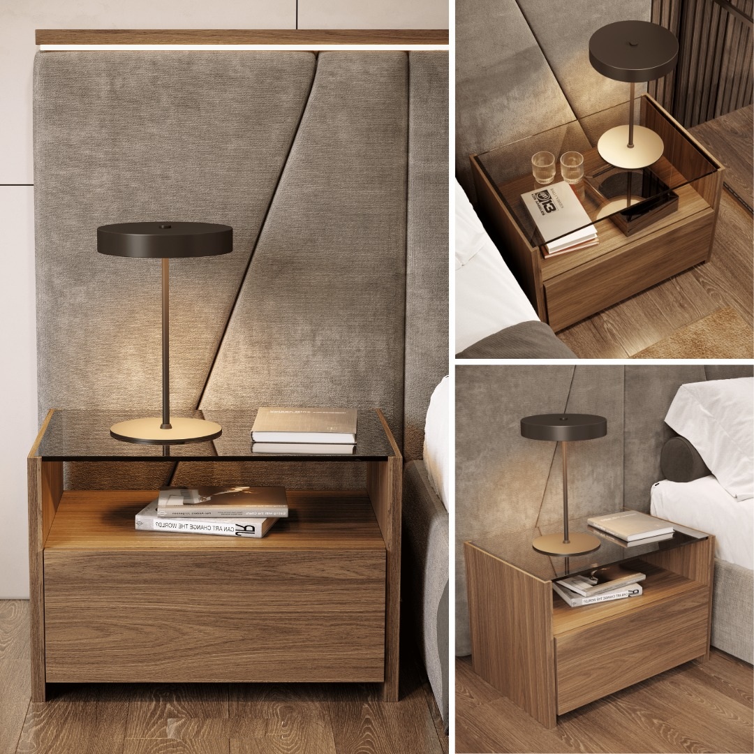 Το κομοδίνο Kugha με ένα ή δυο ενσωματωμένα συρτάρια ξεχωρίζει για τον στιβαρό και γεωμετρικά ακριβή σχεδιασμό του. Οι καθαρές γραμμές και οι ισορροπημένες αναλογίες του συνθέτουν μια κομψή, διαχρονική μορφή που αποπνέει δύναμη και αρμονία. Ένα έπιπλο με έντονη αλλά διακριτική παρουσία, ιδανικό για υπνοδωμάτια που συνδυάζουν την αρχιτεκτονική αισθητική με τη φυσικότητα των υλικών.