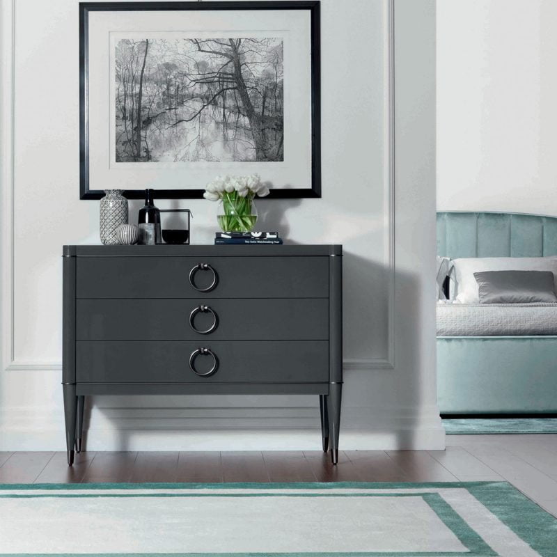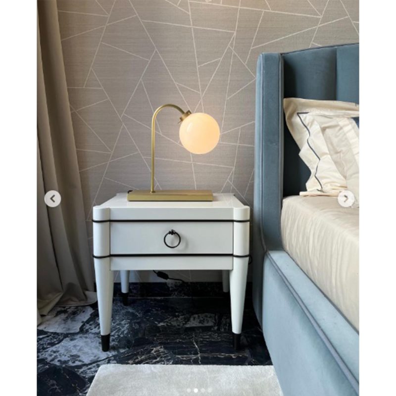 Το Mondrian είναι ένα κομοδίνο με κώνικα πόδια και προαιρετικές διχρωμίες με μεταλλικό χρώμα.
