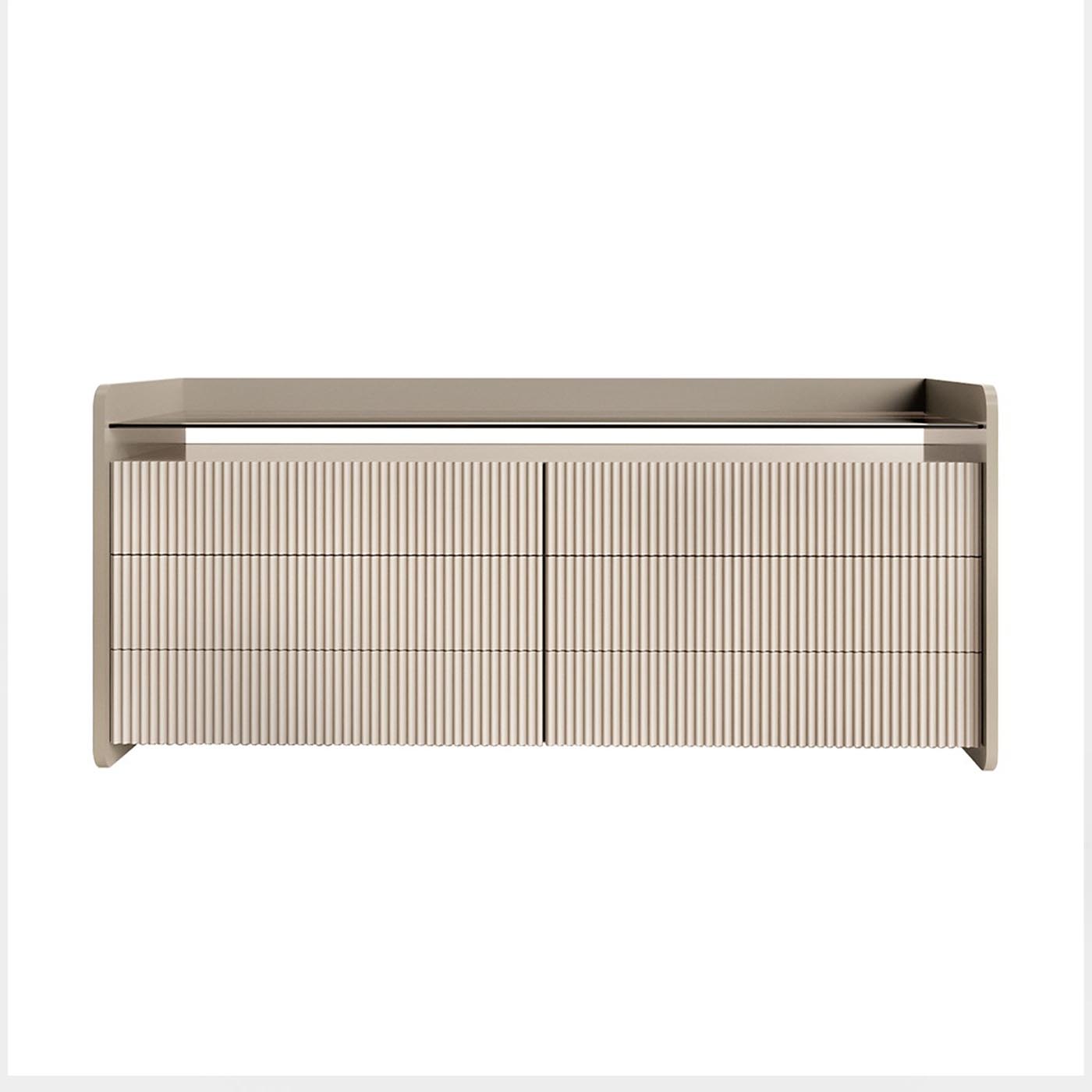Η σιφονιέρα Origin ξεχωρίζει για τον ρετρό σχεδιασμό της, ενώ διακοσμείται από κλασικά και μοντέρνα στοιχεία. Τα αυλακωτά συρτάρια κλέβουν την παράσταση, ενώ η υπόλοιποη δομή της σιφονιέρας είναι γεμάτη ‘κίνηση’. Τζάμι crystal clear ή μπρονζέ φιμέ για πιο ατμσοφαιρικό αποτέλεσμα.