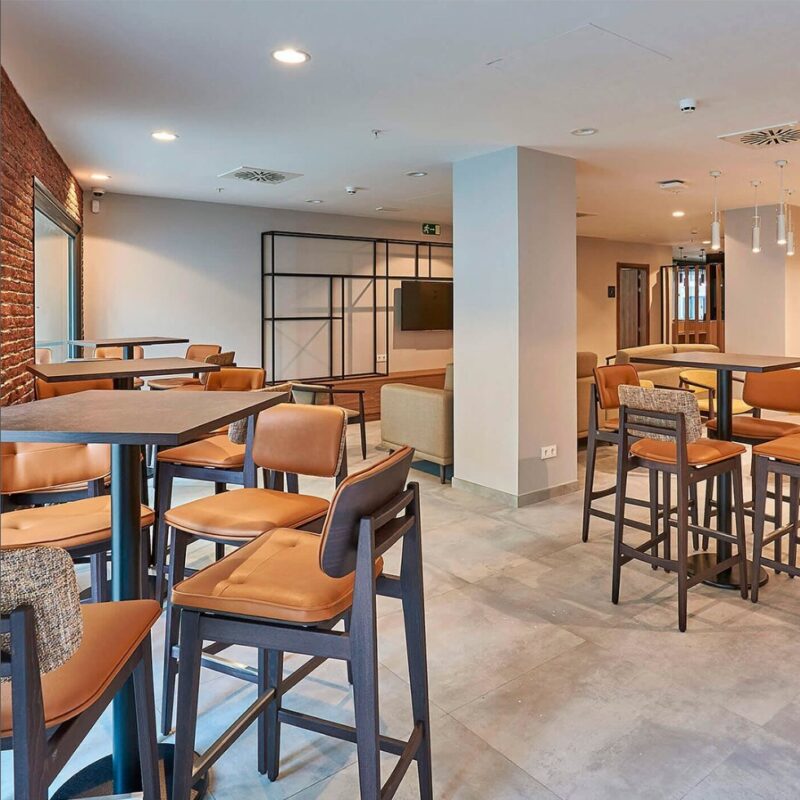 Κατασκευάζεται σε επιθυμητό ύψος καθίσματος και είναι διαθέσιμο σε πολλά χρώματα ξύλου και υφάσματος.