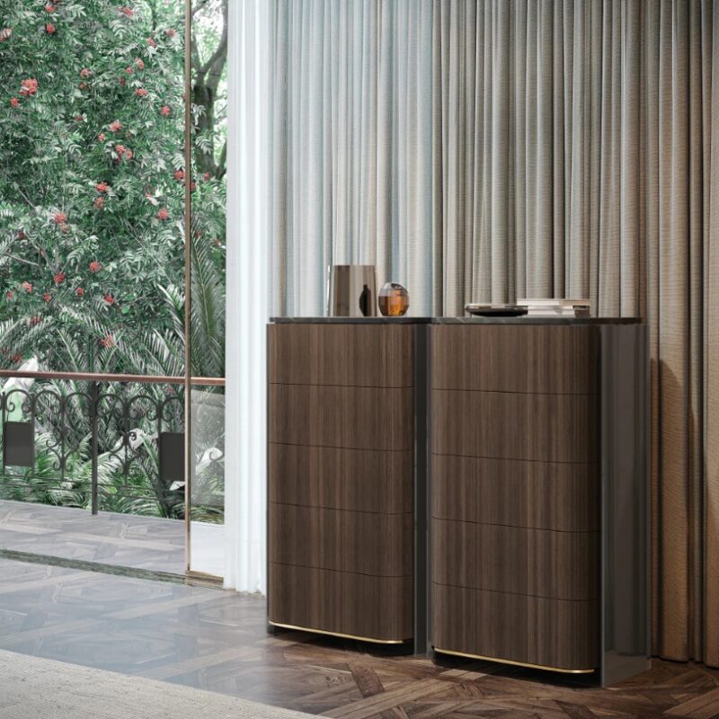 Η Vercelli είναι μια σιφονιέρα με απαλές καμπύλες και πλαϊνά που αγκαλιάζουν το υπόλοιπο έπιπλο. Διαθέτει τρία μεγάλα συρτάρια ώστε να καλύψουν την ανάγκη σας για αποθηκευτικούς χώρους. Ανεξάρτητα από το φινίρισμα που θα επιλέξετε, αυτή η σιφονιέρα θα μεταμορφώσει το υπνοδωμάτιό σας.